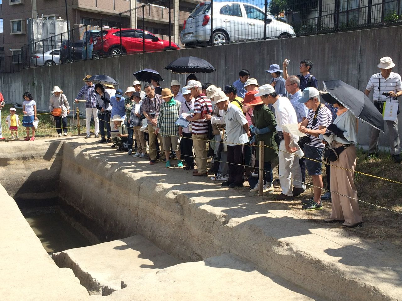 熱心な歴史ファンが発掘担当者の解説に耳を傾けました。