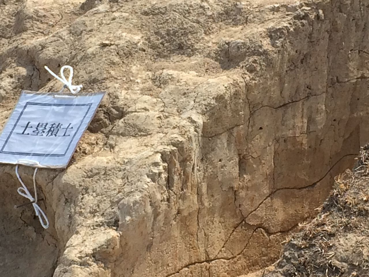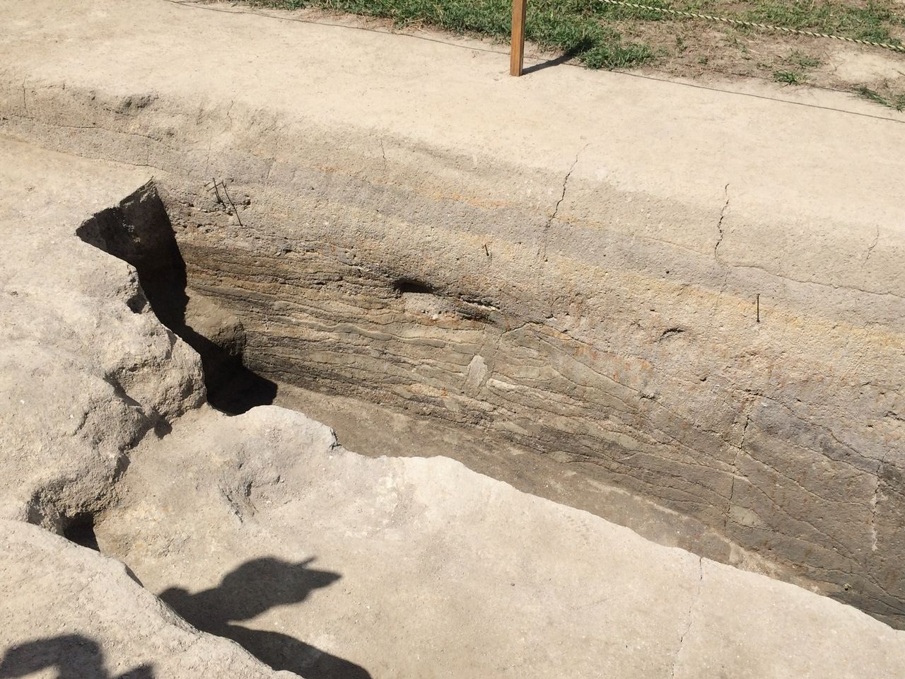 約5㎝の厚さで、土質の違う土を互層に積み上げています。